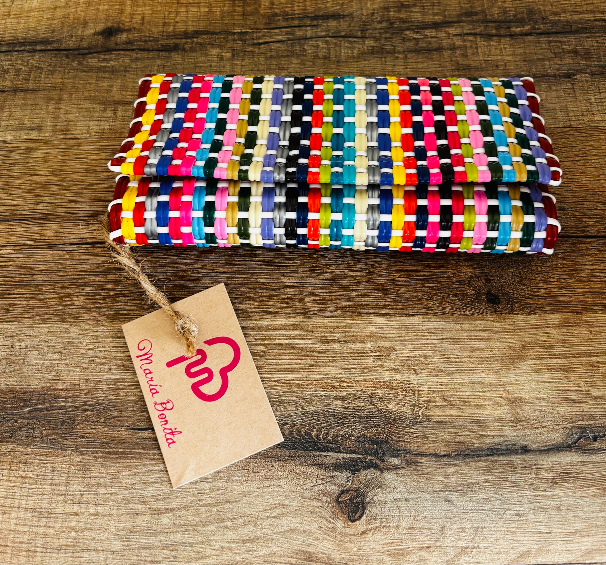 - 🌱 Tressé à la main en plastique recyclé ♻️, ce portefeuille allie engagement écologique et savoir-faire artisanal. Il est doublé à l’intérieur pour une meilleure finition et une plus grande durabilité.